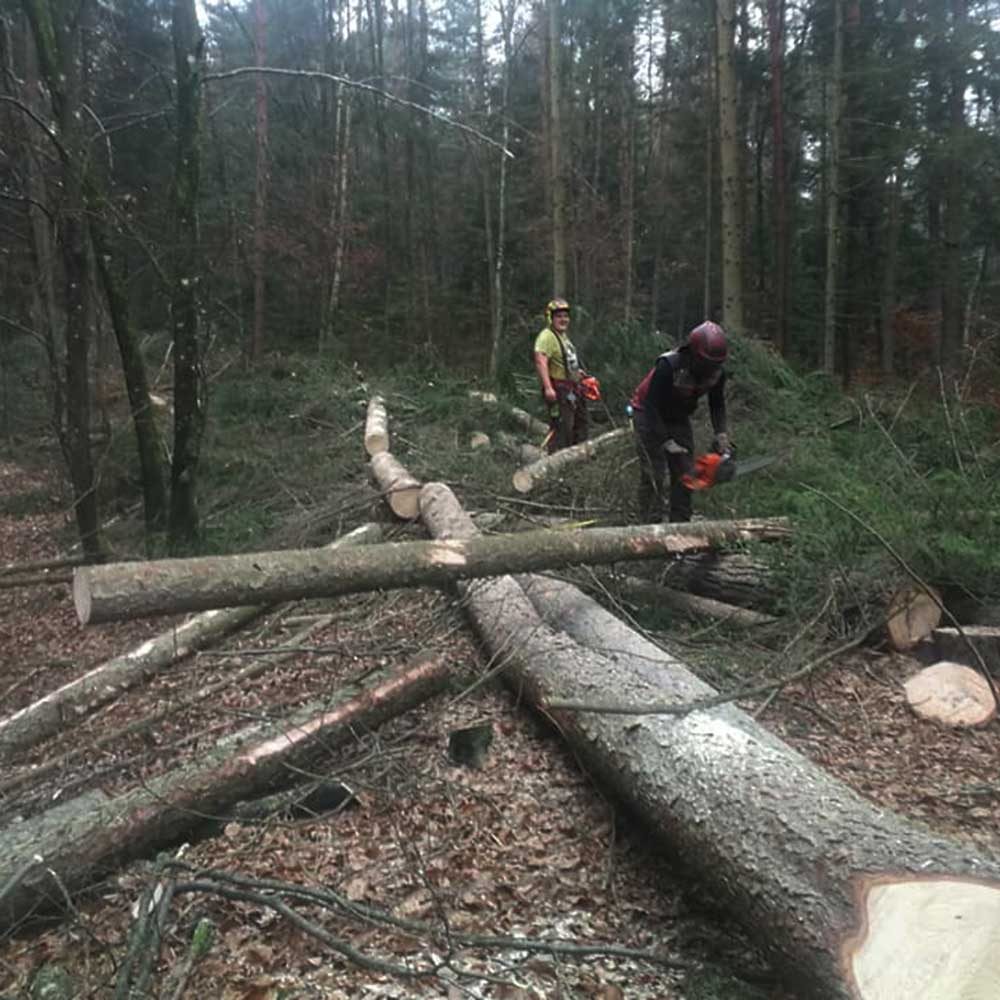 Wir erledigen Forstarbeiten aller Art. Von der Holzbringung über die Baumpflege bis hin zum Wurzelstockfräsen können Sie sich auf das Know-how unserer Mitarbeiter verlassen.